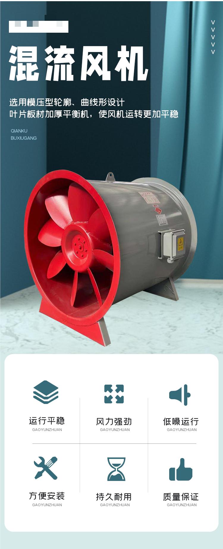 - 軸流風機和離心風機之間的風機,混流風機的葉輪讓空氣既做離心運動又做軸向運動,殼內空氣的運動混合了軸流與離心兩種運動形式,所以叫“混流”。 混……