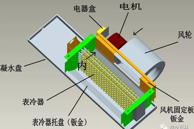 首先將表面冷卻器放入冷凝盤,然后連接并固定,最后蓋上上蓋板。