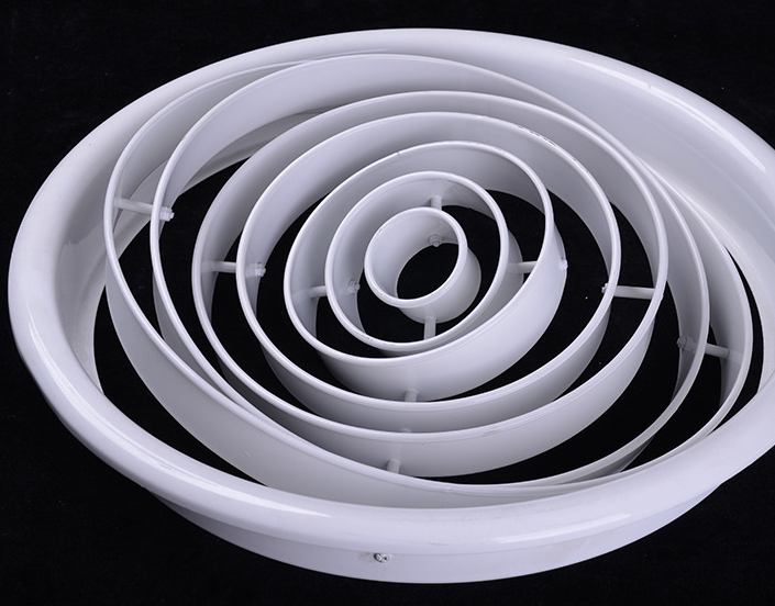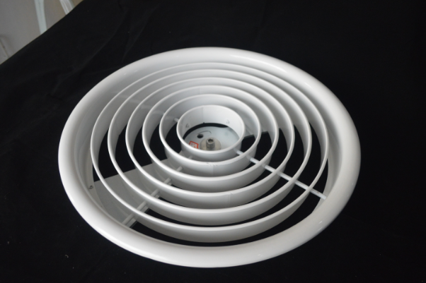 結(jié)構(gòu)外觀為圓形,內(nèi)心有多個(gè)圓環(huán)組成,能可上下45度調(diào)整風(fēng)口阻力小,適用于劇院,體育館及樓層較高的場(chǎng)所,可附加風(fēng)量調(diào)調(diào)節(jié)閥。產(chǎn)品外形美觀外。表面采用靜電噴塑,烤漆或者陽(yáng)極處理。選用優(yōu)質(zhì)加厚鋁合金材料,更加耐用