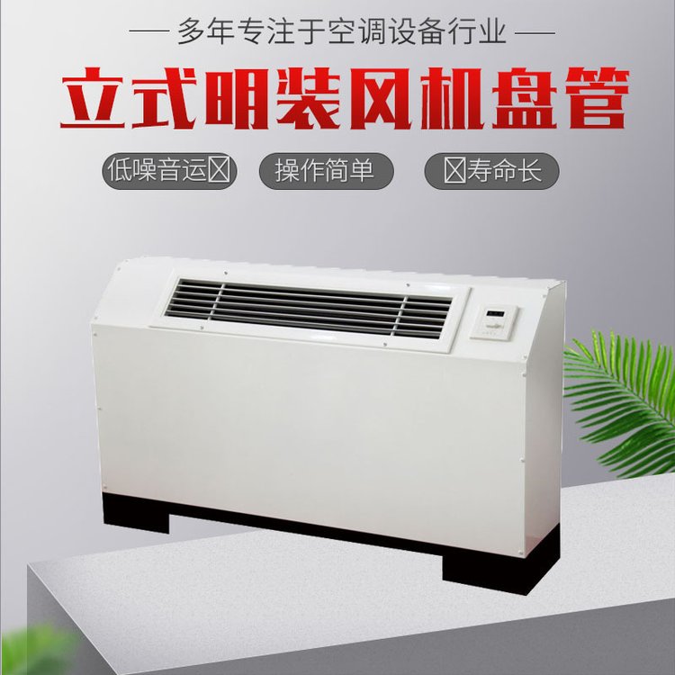 立式明裝風機盤具有管效率高,能量足,風量大,噪音低,安全可靠,壽命長的優(yōu)點,是明裝風機盤管。風量大,噪音低